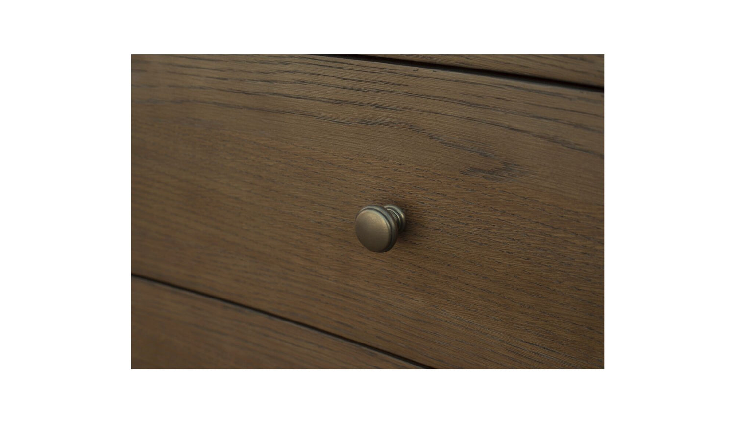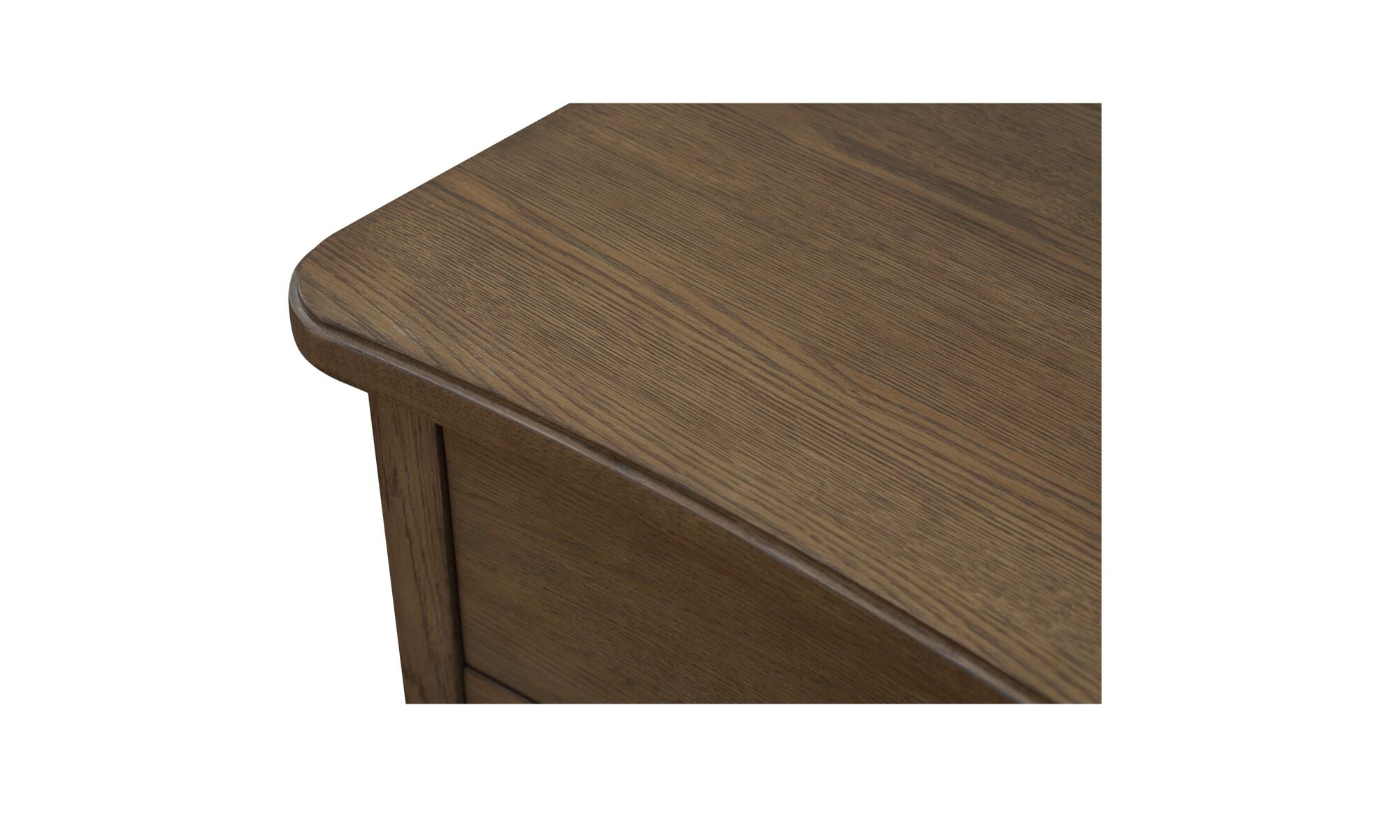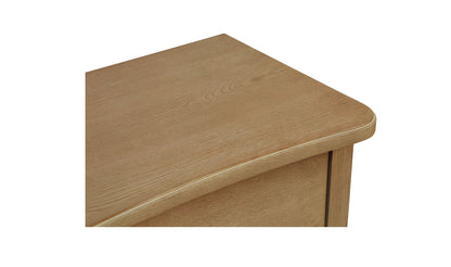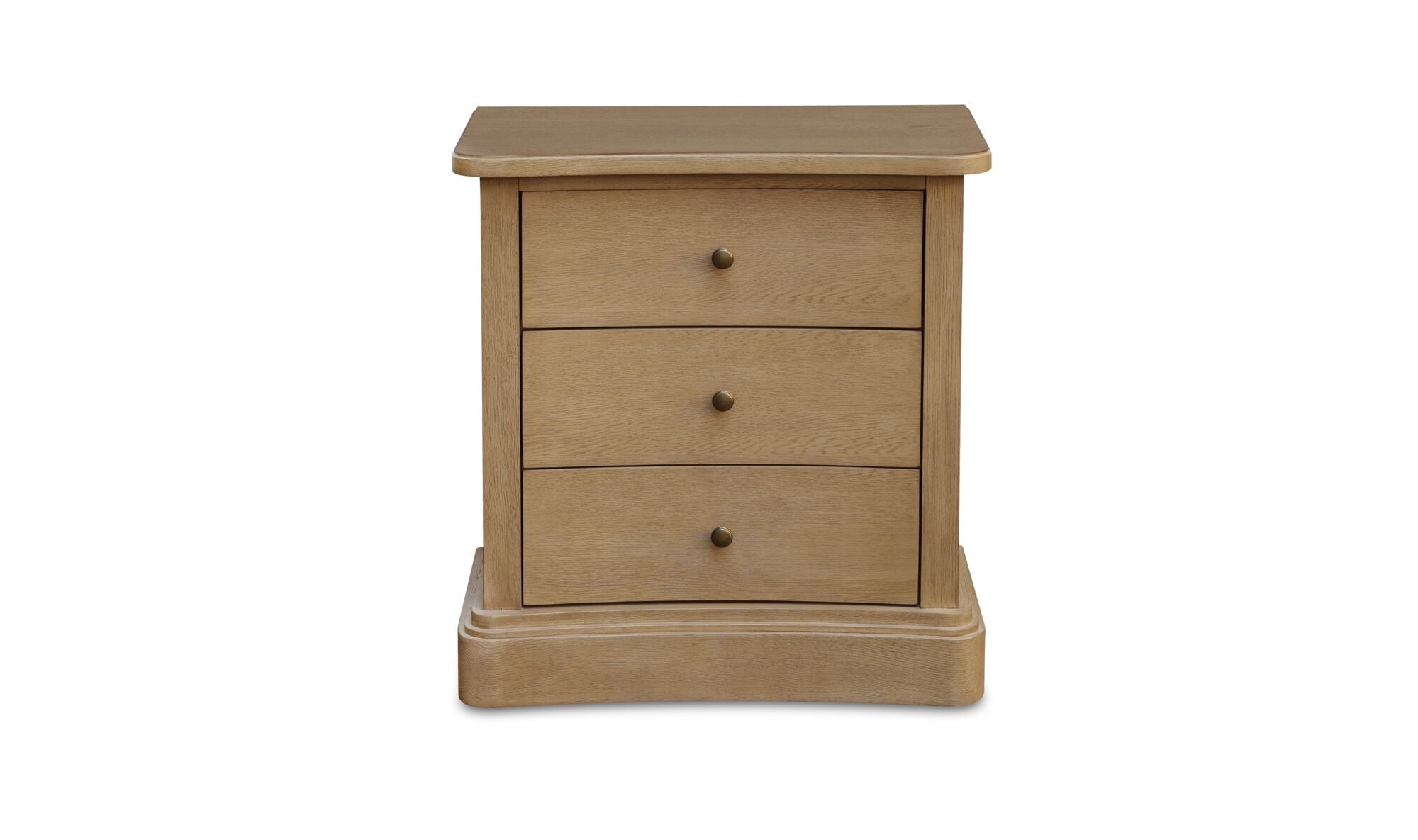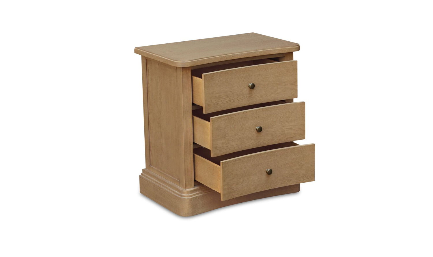 One curve. Three drawers. Plenty of personality. Elan keeps it classic—but adds character. A curved front brings movement to the silhouette, while the sculpted base grounds the shape with quiet presence. Three drawers offer everyday storage, finished with brass hardware that adds a hint of shine. Made from solid oak and easy to work into a room, Elan is a timeless piece that plays nice with modern life.