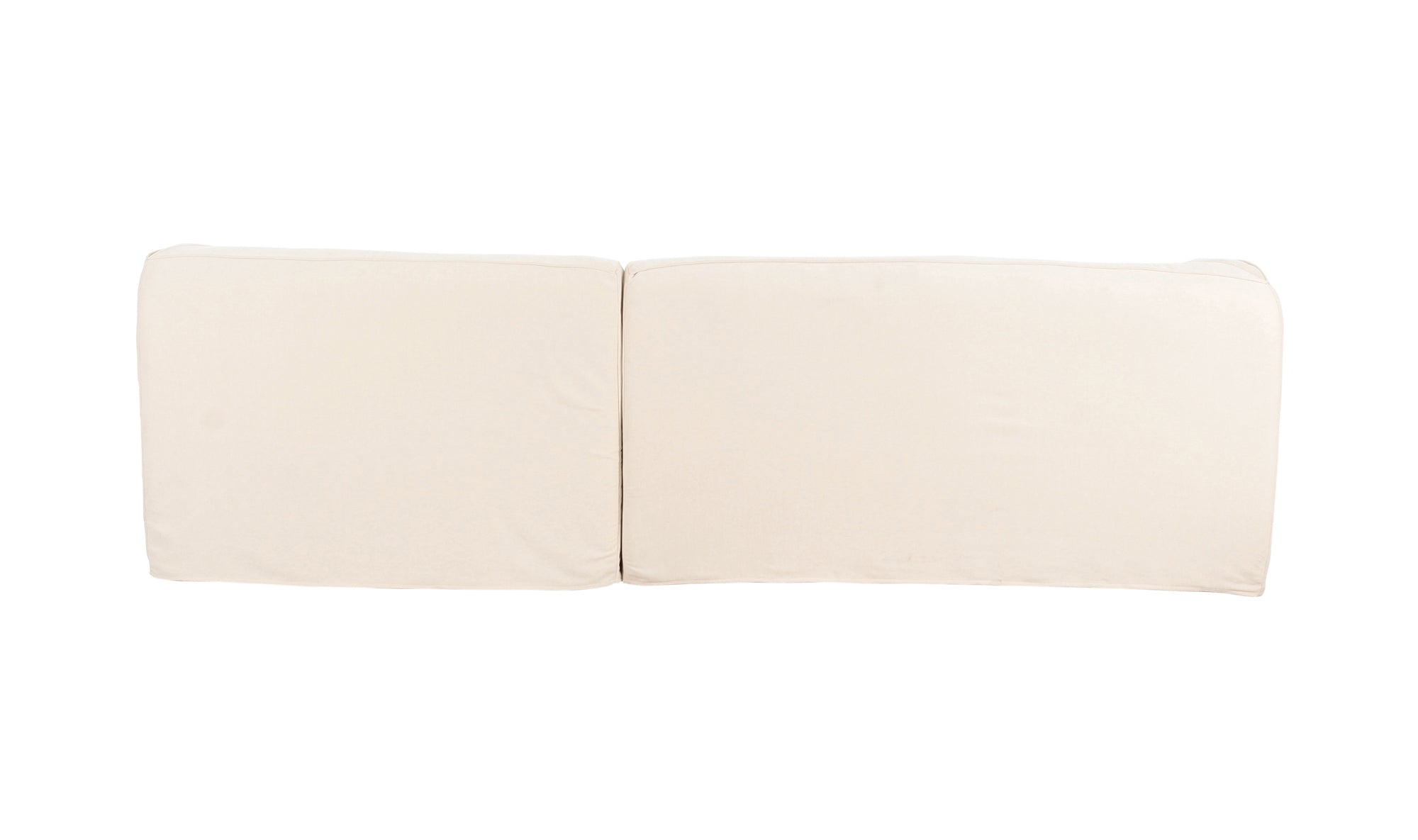 • Cozy, effortless feel with soft curved back and plush faux feather seat. Loose slipcover has a relaxed, wrinkled look