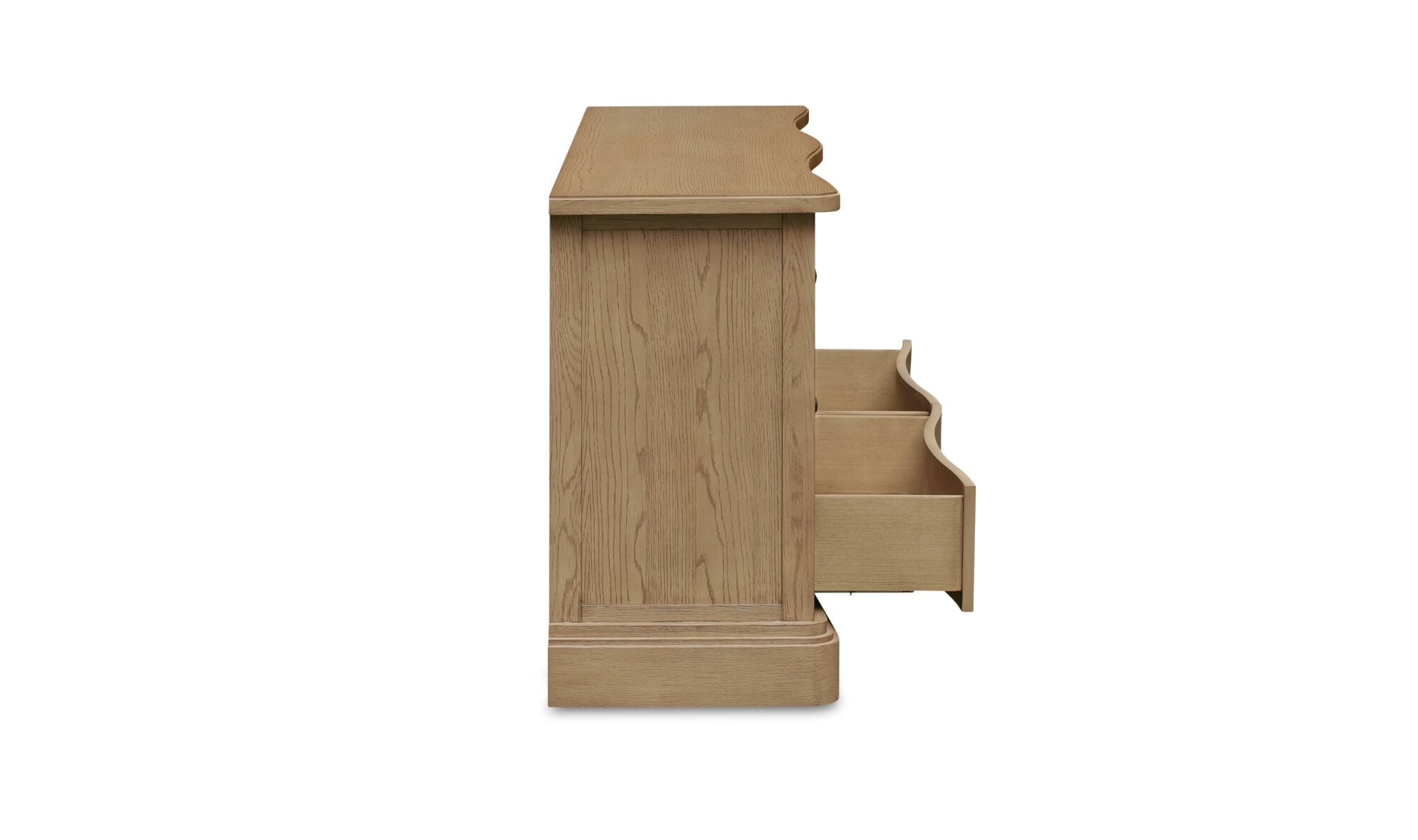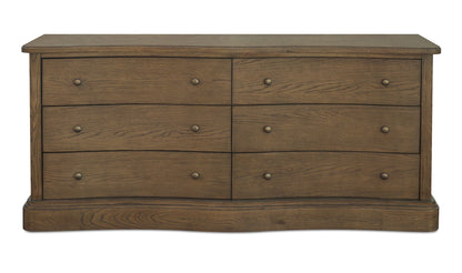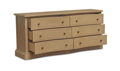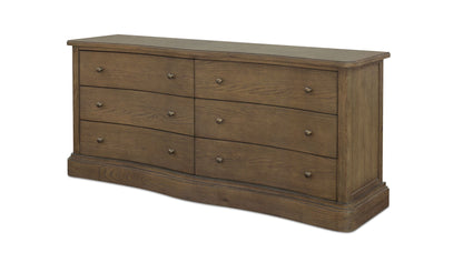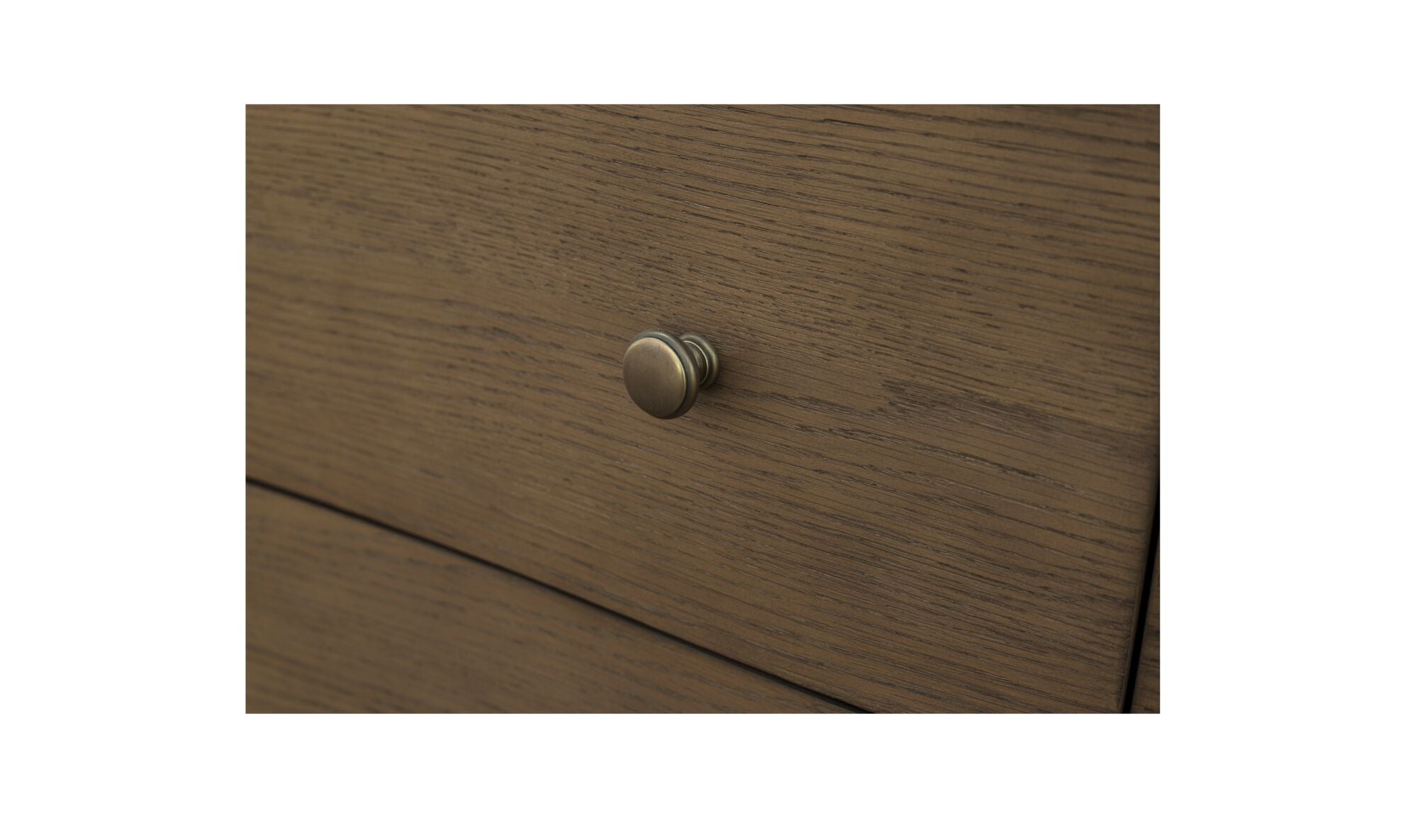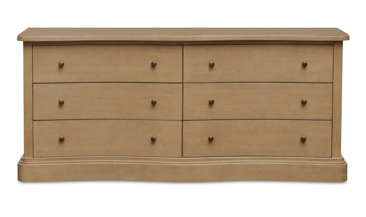 One curve. Six drawers. Plenty of personality. Elan keeps it classic—but adds character. A curved front brings movement to the silhouette, while the sculpted base grounds the shape with quiet presence. Six drawers offer everyday storage, finished with brass hardware that adds a hint of shine. Made from solid oak and easy to work into a room, Elan is a timeless piece that plays nice with modern life.